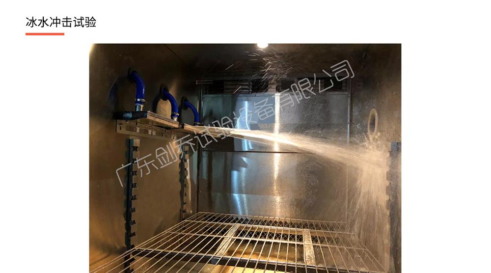 用途:冰水沖擊試驗(yàn)(浪涌水的溫度沖擊試驗(yàn))是模擬部件在駛過(guò)積水時(shí)而產(chǎn)生的浪涌水的負(fù)荷情況,保證部件由于水而急劇冷卻情況下的功能穩(wěn)定性。如車(chē)輛在冬季有水路面駕駛時(shí)冰水濺落到熱的系統(tǒng)/組件上,失效模式為不同的溫度膨脹系數(shù)導(dǎo)致的材料機(jī)械破裂或密封失效